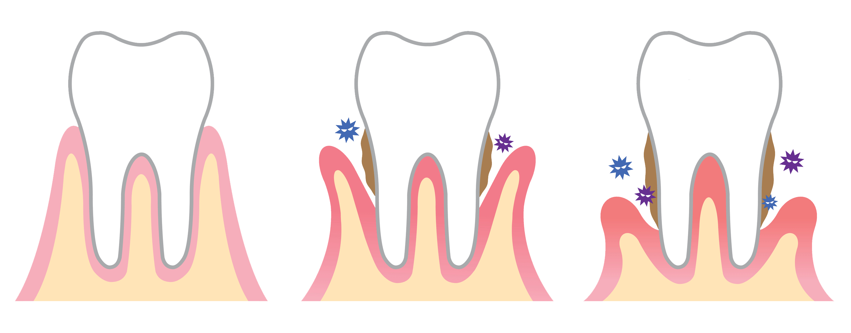 If left untreated, the gum becomes detached from the tooth enamel, exposing the root and forming a pocket between gum and tooth which fills with plaque. Over time, the pocket becomes deeper and the inflammation reaches the bone, which is slowly destroyed. The affected tooth becomes loose and may even fall out. This is known as periodontitis.